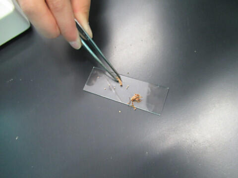 顕微鏡で雄花の花粉を観察すると、花粉の両脇に空気の袋があることが分かりました。これにより、花粉が風で飛ばされやすくなり、花弁のないマツでも虫の力を借りずに受粉できることが分かりました。