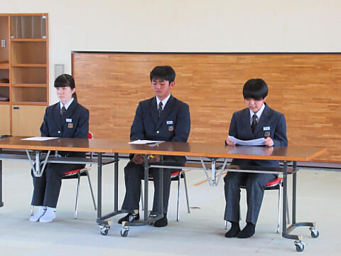 「多くの学びを糧として、人として成長していきましょう。」と、校長先生から生徒の皆さんに励ましの言葉が届けられました。