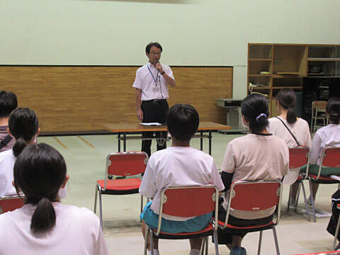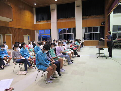 学校生活についての話を聞き、改めてマナーや服装・髪型を全体で確認していました。