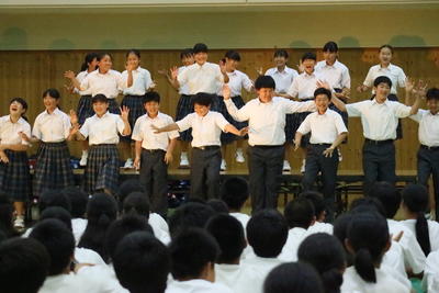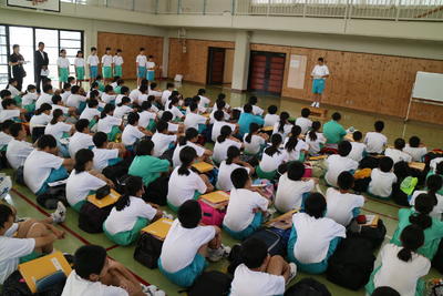 6校時、体育館にて全校生が参加して「生徒総会」が行われました。本年度の生徒会本部および各種委員会の運営方針が示されました。
