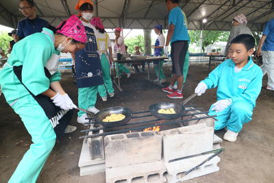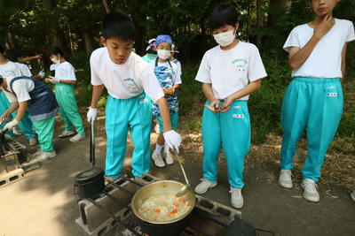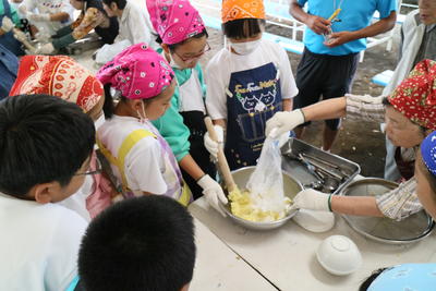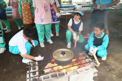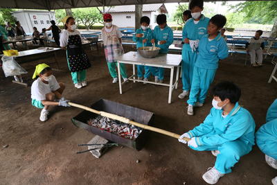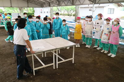 練習後半は、2・3年生(女子-旗ダンス、男子-テント設営&プール清掃)、1年生は大縄跳びの練習を行いました。