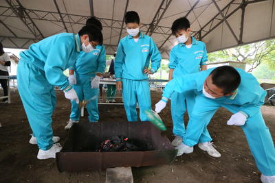 【こちらは百足競走の練習? 紐を縛り忘れてますよ~】