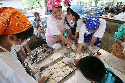 【かわいい「うさぎ」のかぶり物。2年生の団体種目です。】