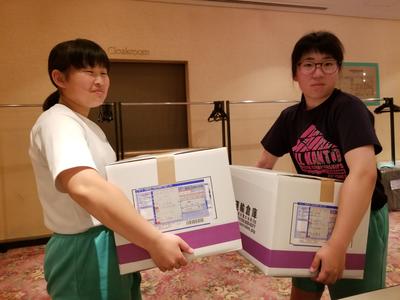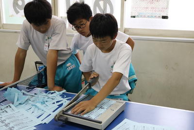 【記録係の集計を行う生徒たち。競技中は着順が気になります。】