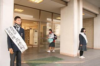 昇降口北側でも支持を訴える候補者。ご苦労様です。
