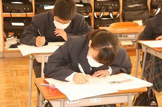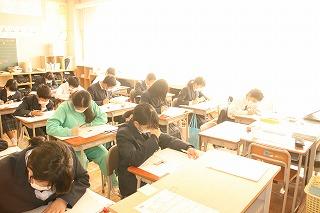 1年生も「社会科」。真剣にテストに取り組んでいました。