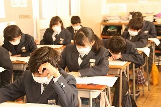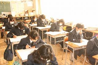 本校でもインフルエンザ予防のために、生徒、教職員全員の「マスク着用」「手洗い、うがいの励行」を進めて参りますので、ご家庭のご協力をお願いいたします。なお、休日も「人混みに行かない」、「外出先から帰ったら『手洗い』『うがい』を必ずする」など、ご家庭でもお願いします。3年生も大切な時期を迎えています。学校全体で3年生への応援をしていきたいと考えています。よろしくお願いいたします。