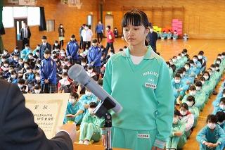 区間賞(4区)豊田 晴菜さん(1年)※豊田さんは卓球でも郡1年生大会 準優勝。
