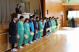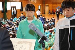 朝の寒さを避けるため、表彰伝達をお昼前の時間帯に行いました。いつものように、全員の紹介はできません。すみませんです。カメラマンの直井先生は修行中の身。まだまだ撮影技術は未熟ですが、それでも最近は腕を上げています。うまく撮れている写真を選んでみました。