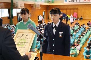 芳賀郡市内青少年読書感想文コンクール 優秀賞 3年 遠藤のどかさん。