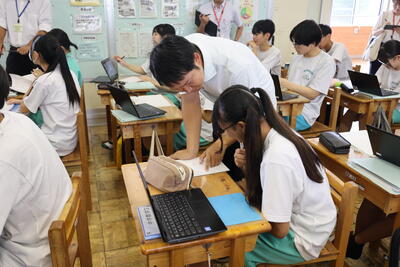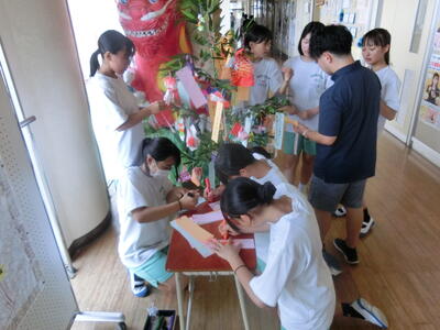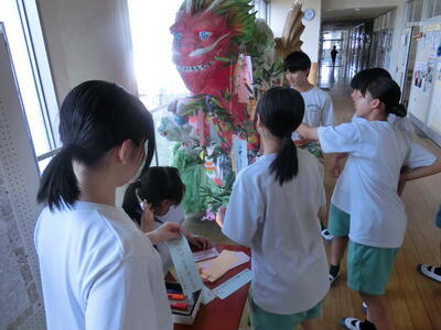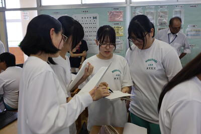 その中で生徒会の生徒たちは、次期生徒会の応援演説の準備のため、たすきの作成に取り掛かっていました。昨年度の先輩方のものを参考にしながら、自分たちには何ができるか話し合っているところが印象的でした。