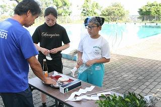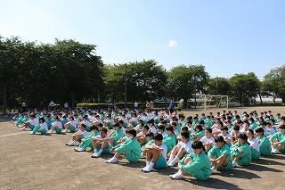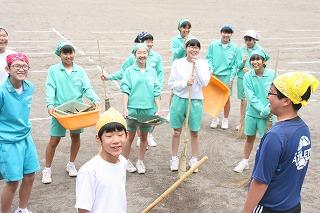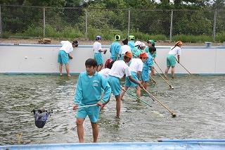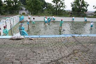 清掃の時間に「プール開き」を行いました。1年生の大垣君が手伝ってくれました。
