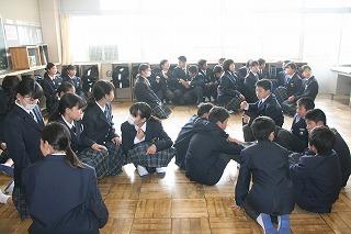 1組は道徳の時間。何やらグループに分かれて集まっています。