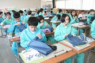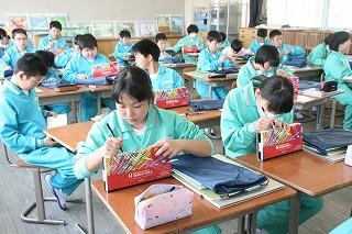 美術で使う道具も、小学校とはちょっと違うね。(絵の具の箱も英語で書かれてるし・・。)