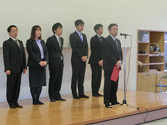 また、登校した2・3年生を前に、新たに着任した先生方からあいさつをいただきました。