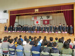 返事や動き方の確認等を行いました。また、2・3年生の代表が校歌を歌い、手本となって