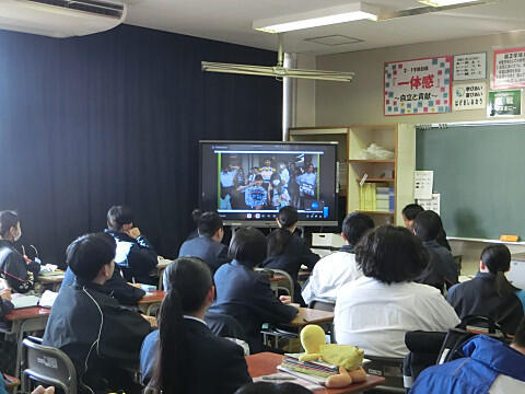 本校の姉妹校である、台湾正心高級中学校との交流についての発表がリモートで行われました。