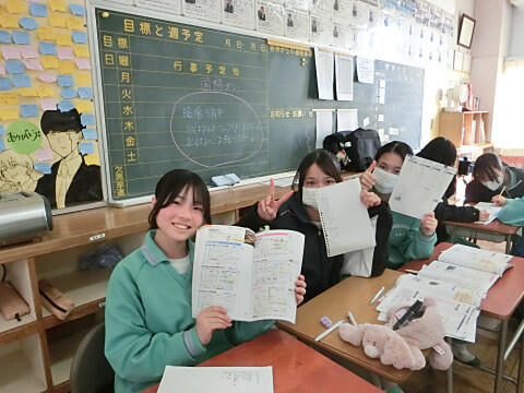 質問の済んだ生徒は自教室でそれぞれテスト勉強です。それぞれの勉強内容を見せてくれました。