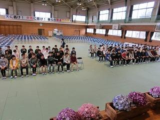 体育館で入学式の流れを確認しました。