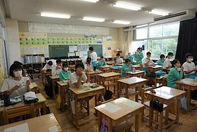給食終了後、自席に座ってしっかりと歯磨きをし、口の健康をよりよい状態に保つことを目的としています。