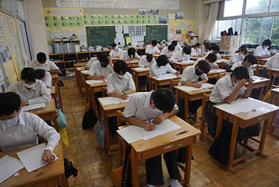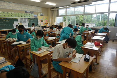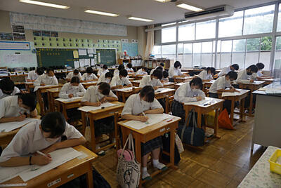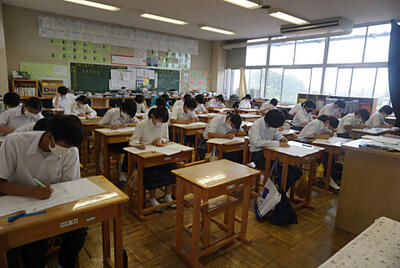 テスト最終日に向けて、50分間の「西中タイム」では、友達同士で問題を出し合ったり、教え合ったりしながら、集中して取り組んでいました。