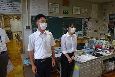 本日から2名の教育実習が始まります。それぞれの担当教科は、数学と保健体育で、担当のクラスは1年1組と1年3組になります。3週間という短い期間ですが、みなさんよろしくお願いします。