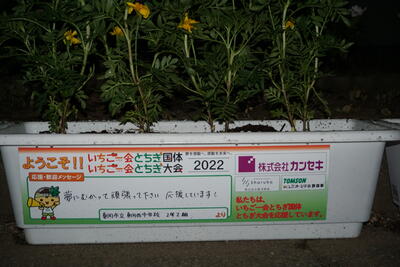 プランターには、生徒から選手への応援メッセージが書かれています。