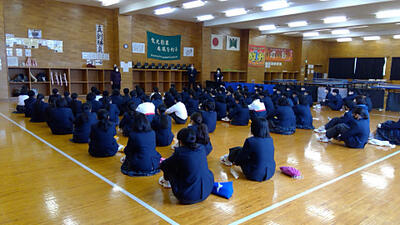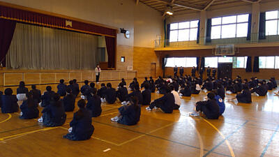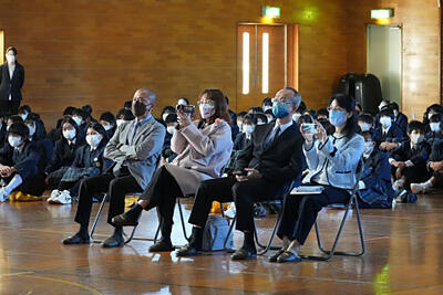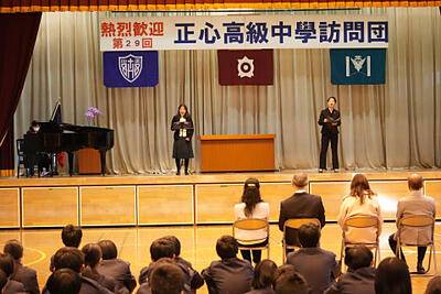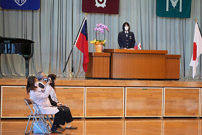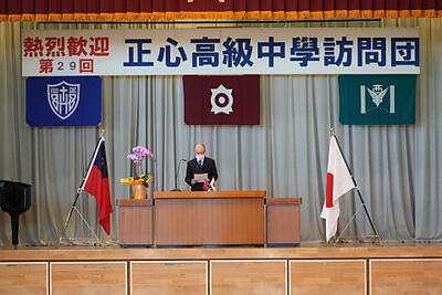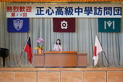 本日5,6校時に、本校の姉妹校である台湾の正心高級中學スタッフの歓迎式典を体育館で挙行しました。
