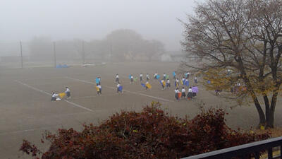 3年生の女子は霧の中、25日に行われる、台湾正心高級中學スタッフ歓迎会で披露する旗ダンスの練習をしていました。