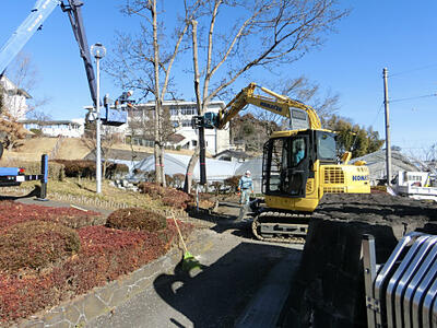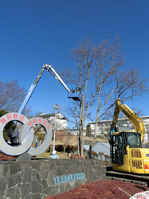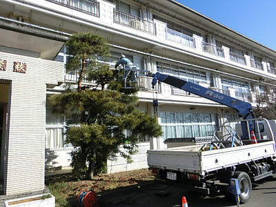 昨日、業者の方による校内の樹木の伐採や剪定が行われました。