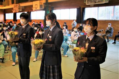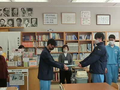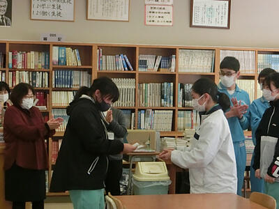 本日、1年間の貸し出し図書の冊数を集計し、読んだ冊数の多かった生徒(個人)・クラス(団体)を表彰しました。