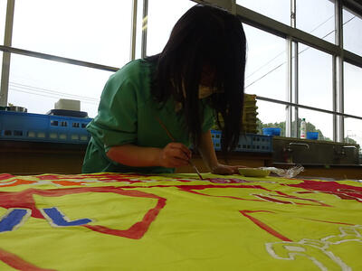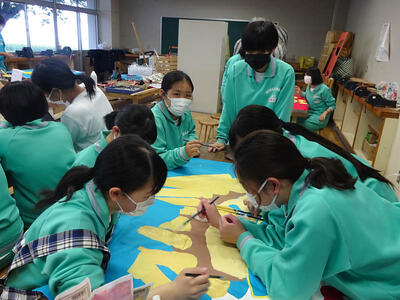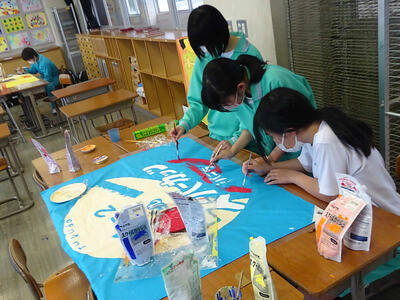 アート部の皆さんが、協力しながら各学級で決めた学級旗を作成してくれています。