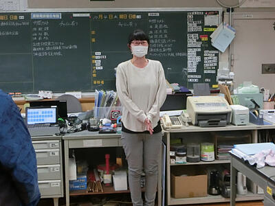 また、3-4担任の薄井先生が産休に入られます。放課後、薄井先生から職員へご挨拶がありました。