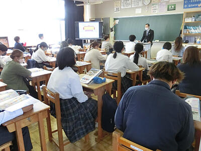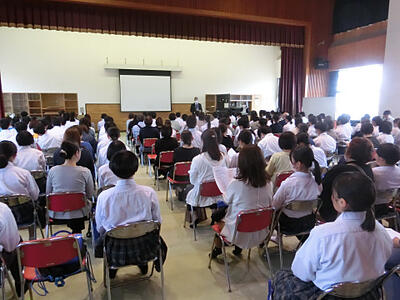 また、進路説明会も行われました。近隣の高校から先生をお招きして学校の特徴や受験に関する内容の説明をいただきました。3年生に加え、2年生の希望者も説明会に参加し、自分の進路について深く考える機会となりました。