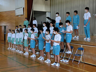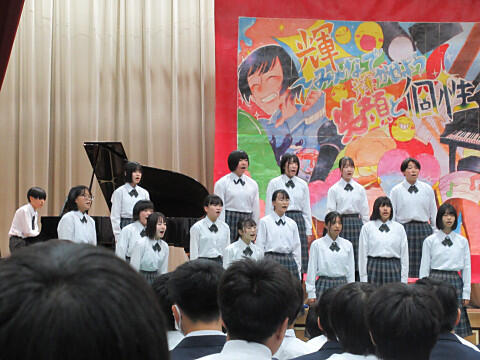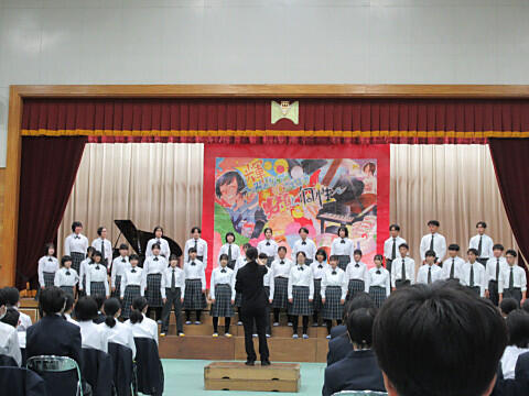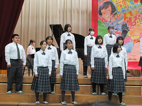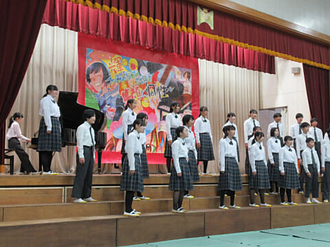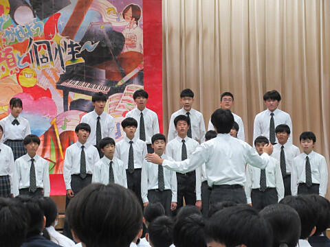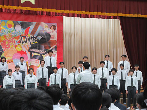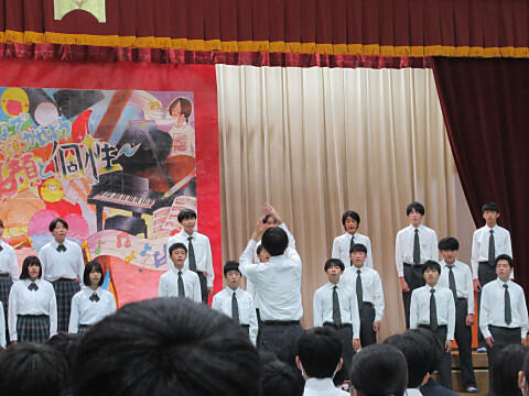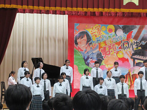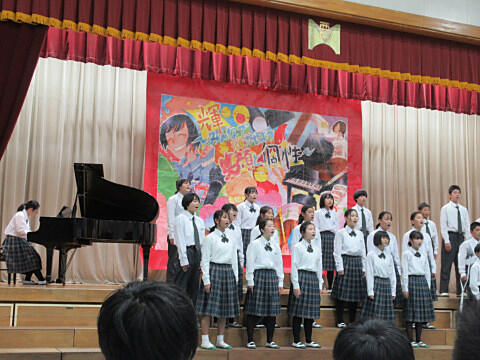 続いて行われた「合唱コンクール」では、各クラスがこれまでの練習の成果を十分に発揮して、素晴らしい合唱を披露しました。また、「特設合唱部」と「吹奏楽部」の演奏も披露されました。