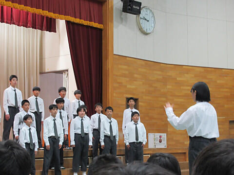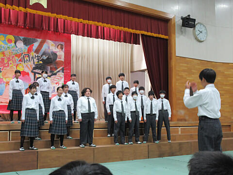 休み時間を活用し、どの学年も合唱練習に励んでいます。