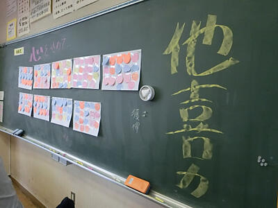 他喜力コーナーは、クラスメイトのいいところなどを挙げ、写真のように掲示します。