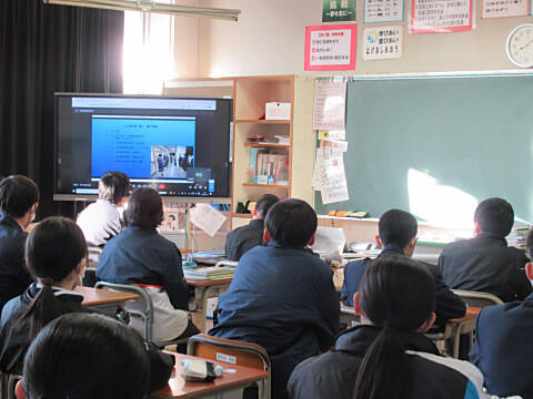 今朝の生徒集会は、国際委員会主催で「正心中學訪問報告会」をリモートで行いました。