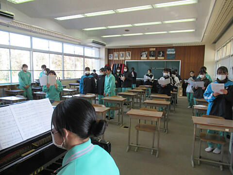 2年生は2月2日(金)の「立志式」に向けて、合唱練習をしています。
