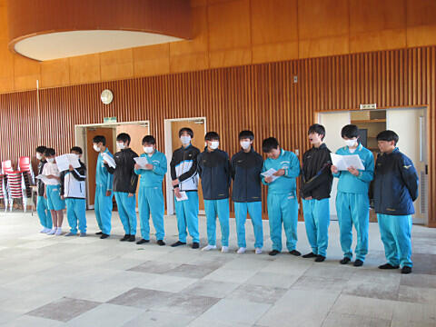 訪問団員が訪問の日程や交流の様子、感想や学んだことなどを発表し、訪問の成果を全生徒で共有しました。