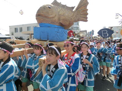 〇中学生御輿のスナップ写真を御覧ください。