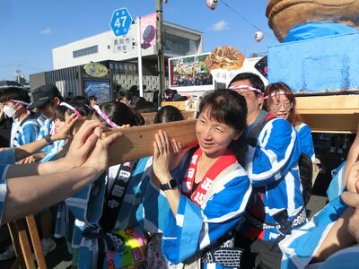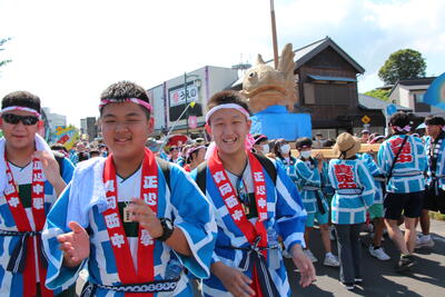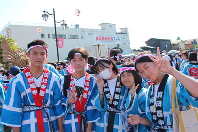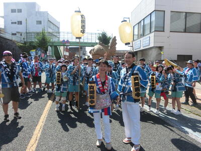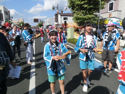 正心中生徒は、午前中ホスト生徒と過ごし、13時に真岡西中に集合し、夏祭り中学生御輿に参加する。