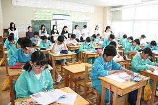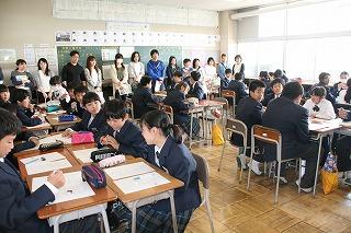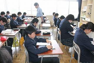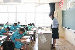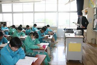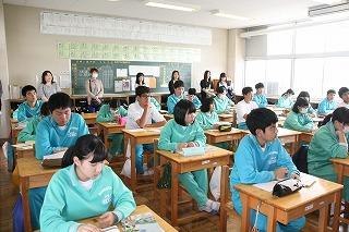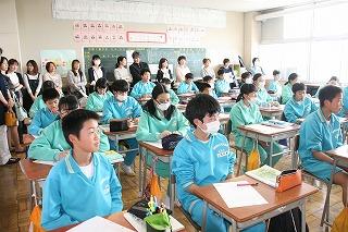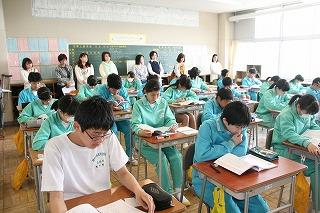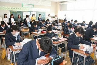 2年生は「ありがとう」が2クラス。「自分を見つめて」「金色の稲穂」などの題材でした。生徒のみなさんは、真剣に考えていました。