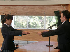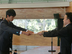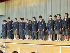 12日、第1学期学級委員の任命が行われました。各学級の代表として、堂々とした返事と