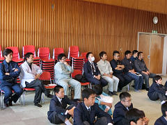 これから始まる中学校生活についての話を聞きました。その後、クラスごとに学校内の