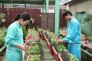 「中島園芸」さん。プランターのきれいな花。水の管理が大変そうですね。