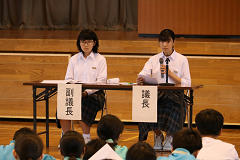 生徒会の本部役員です。しっかりと総会を運営しました。