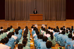 校長先生より、全校生がしっかりとした態度で総会に参加できました、との