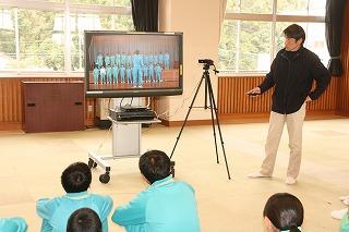 こちらは2年1組。ビデオ撮影した画像を見ながらチェックしてました。