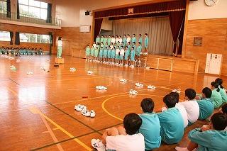 朝練。体育館では1年2組のみなさんががんばってました。